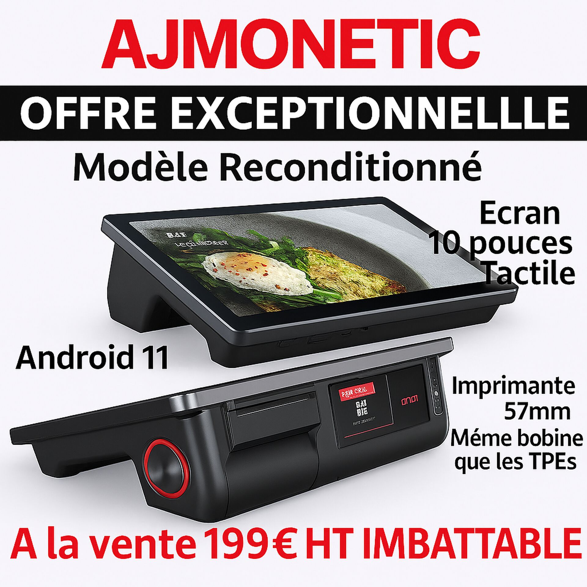 La caisse enregistreuse tactile IMIN D1 reconditionnée à 199 €HT chez AJ MONETIC constitue une opportunité exceptionnelle pour s’équiper d’un matériel professionnel, fiable et performant.